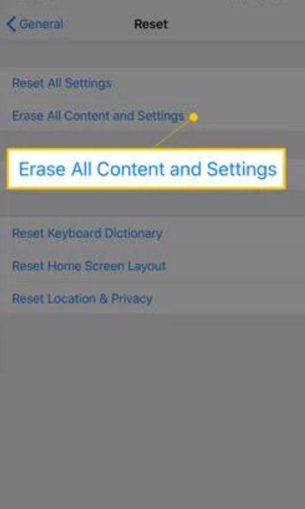 स्टेप-3: अब आईफोन को रीसेट करने के लिए आपको रीसेट वाले ऑप्शन पर क्लिक करना होगा। फिर Erase All Content and Settings पर क्लिक करें।
