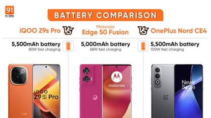 हमने हाल ही में iQOO Z9s Pro, Motorola Edge 50 Fusion और OnePlus Nord CE4 के बीच परफॉर्मेंस की तुलना की थी। यह तीनों लगभग 25,000 की कीमत के अंदर आते हैं। इसलिए अब हम इनकी बैटरी और चार्जिंग क्षमता को समझने के लिए कंपैरिजन कर रहे हैं। आइए, आगे जानते हैं कौन सा स्मार्टफोन सबसे अच्छी बैटरी लाइफ और सबसे तेज चार्जिंग प्रदान करता है।