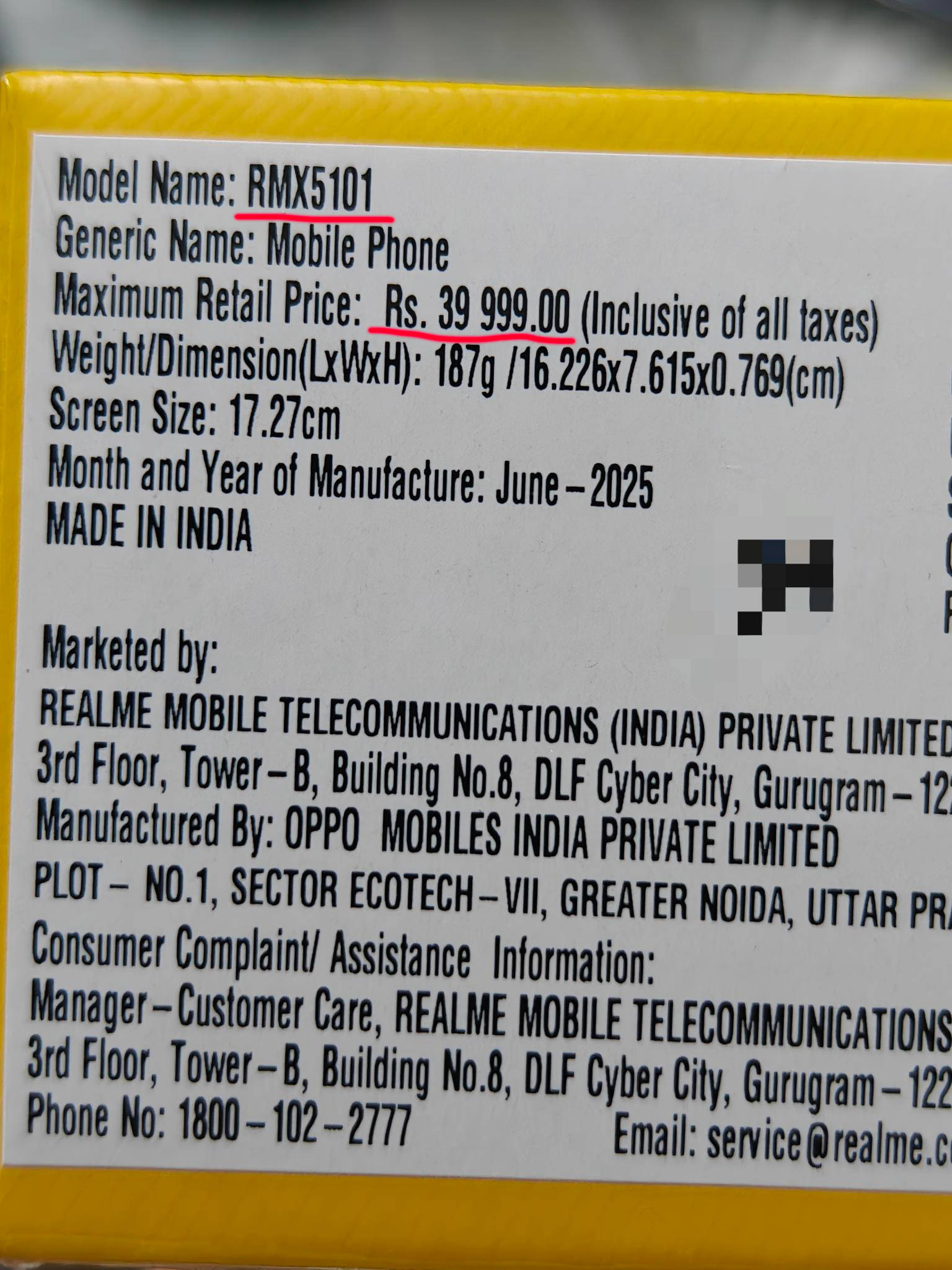सामने आए लीक में रियलमी 15 प्रो के 12GB RAM + 256GB Storage वेरिएंट की कीमत बताई गई है। यहां स्मार्टफोन का एमआरपी शेयर किया गया है। लीक के मुताबिक इस मॉडल का बॉक्स प्राइस 39,999 रुपये है। गौरतलब है कि MRP यानी मैक्सिमम रिटेल प्राइस हमेशा प्रोडक्ट की अधिकतम कीमत को दर्शाता है। ऐसा ही Realme 15 Pro बॉक्स प्राइस से भी है। MRP और MOP में हमें 3 से 4 हजार का अंतर देखने को मिल सकता है। अगर यहां 39,999 लिखा गया है तो उम्मीद कर सकते हैं कि मार्केट में यह फोन 35,999 रुपये में सेल के लिए उपलब्ध कराया जा सकता है।