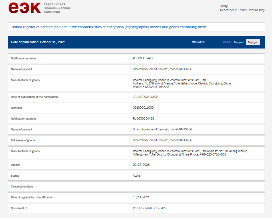 BIS और NBTC सर्टिफिकेशन के अलावा Realme Narzo 50 ने EEC और इंडोनेशिया टेलीकॉम सर्टिफिकेशन को भी मंजूरी दे दी है। हैंडसेट को EEC और इंडोनेशिया टेलीकॉम वेबसाइट पर मॉडल नंबर RMX3286 के साथ लिस्ट किया गया है।इसे भी पढ़ें: Realme 9i लॉन्च से पहले Snapdragon 680 SoC, 50MP और 5000mAh बैटरी के साथ हुआ लिस्ट