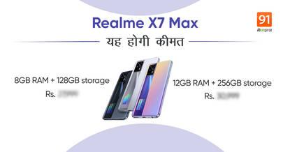 Realme X7 Max के बाजार में आने से पहले ही इस फोन की कीमत इंटरनेट पर लीक हो गई है। एमएसपी द्वारा प्रकाशित रिपोर्ट में दावा किया गया है कि रियलमी कंपनी अगले महीने यानी जून के शुरूआती दिनों में इस फोन को बाजार में उतार देगी। फोन की लॉन्च डेट तो पुख्ता नहीं हो पाई है लेकिन चर्चा है कि रियलमी एक्स7 मैक्स स्मार्टफोन के साथ कंपनी का 43-इंच 4K Smart TV भी मार्केट में एंट्री लेगा। वेबसाइट की रिपोर्ट में फोन की कीमत की जानकारी भी दी गई है।