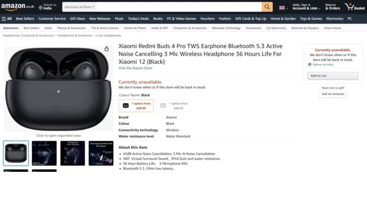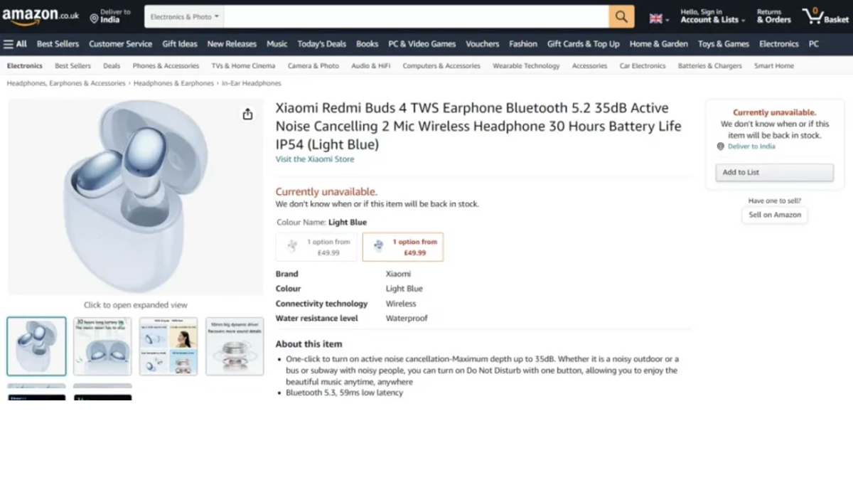 Redmi Buds 4 and 4 Pro price leaks on Amazon