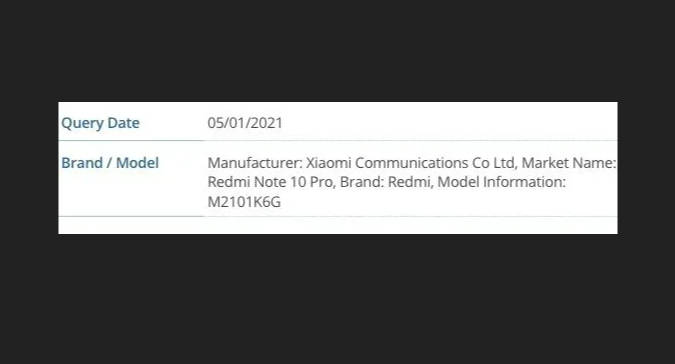 शाओमी ने बीते दिनों मिडरेंज सेगमेंट में कई स्मार्टफोन्स लॉन्च किए हैं। इसके अलावा हाल ही में कंपनी ने भारतीय बाजार में अपने Mi 10i स्मार्टफोन को 108MP कैमरा के साथ पेश किया। वहीं, अब खबर सामने आ रही है कि कंपनी Redmi Note 10 सीरीज लाने को तैयार है। दरअसल, Redmi Note 10 Pro को मॉडल नंबर M2101K6G के साथ FCC वेबसाइट पर स्पॉट किया गया है जो इस बात का संकेत देता है कि फोन जल्द बाजार में एंट्री करेगा। लिस्टिंग को सबसे पहले टेक वेबसाइट MySmartPrice ने देखा था।