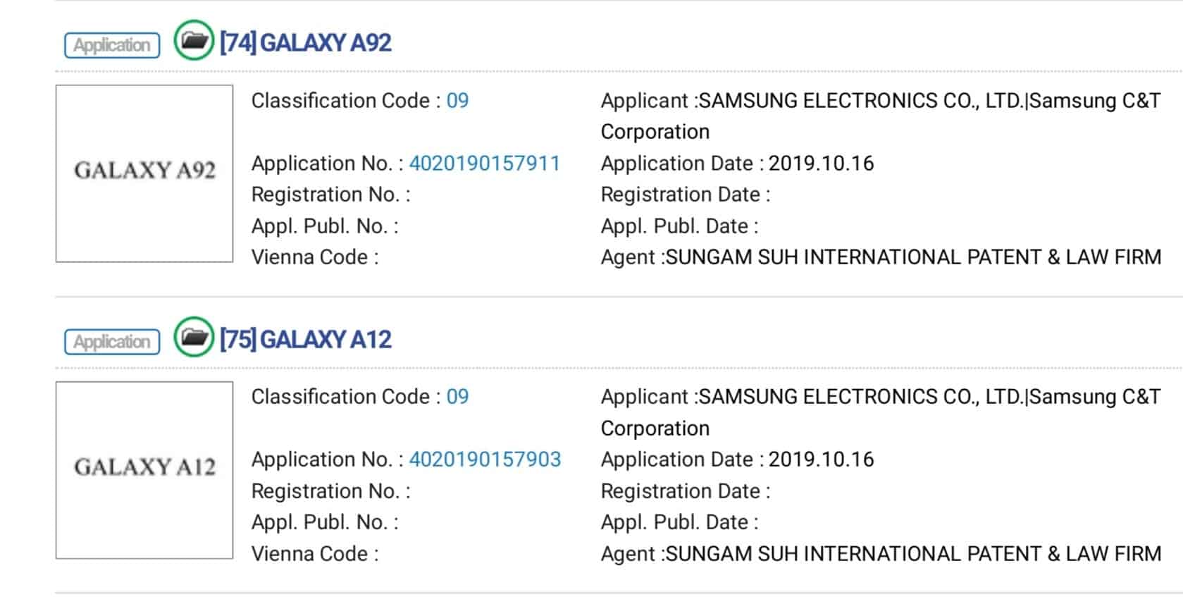 Samsung Galaxy A10 को गैलेक्सी ए सीरीज़ की पहली जेनरेशन मानें तो Samsung Galaxy A11 सीरीज़ की दूसरी जेनरेशन थी और अब Samsung Galaxy A12 सीरीज़ की तीसरी जेनरेशन होगी। पेटेंट में सामने आए सभी स्मार्टफोंस इसी सीरीज़ के हैं। पेटेंट में शामिल नाम इस प्रकार हैं :