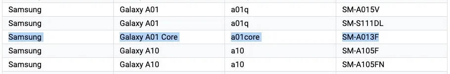साउथ कोरिया की स्मार्टफोन बनाने वाली कंपनी सैमसंग मार्केट में जल्द लो बजट कैटगरी के अंदर अपना नया फोन पेश कर सकती है। हाल ही में सैमसंग के एक नए एंट्री लेवल फोन को ब्लूटूथ एसआईजी सर्टिफिकेशन पर देखा गया था जो कि Samsung Galaxy A01 Core था। गैलेक्सी ए01 कोर कंपनी द्वारा लॉन्च किए गए Galaxy A01 का छोटा वर्जन होगा।वहीं, Bluetooth सर्टिफिकेशन्स से Samsung Galaxy A01 Core के जल्द लॉन्च होने की जानकारी सामने आई थी। अब यह फोन गूगल प्ले कंसोल और गूगल प्ले सपोर्ट लिस्टिंग वेबसाइट पर देखा गया है, जिसमें फोन की स्पेसिफिकेशन्स और लुक सामने आई है।