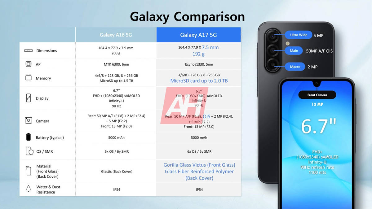 Samsung Galaxy A17 का लॉन्च जैसे-जैसे करीब आता जा रहा है, इस मोबाइल की उतनी ही डिटेल्स इंटरनेट पर लीक होने लगी है। बीते सप्ताह ईपीटीओ सर्टिफिकेशन पर फोन का ग्लोबल प्राइस सामने आया था। वहीं अब सैमसंग गैलेक्सी ए17 का प्रोमोशनल मार्केटिंग मटेरियल इंटरनेट पर लीक हो गया है। इसे विदेशी वेबसाइट एंड्रॉयड हेडलाइन्स द्वारा शेयर किया गया है जिसमें फोन की फोटो के साथ ही मोबाइल फीचर्स और स्पेसिफिकेशन्स का भी खुलासा हो गया है जिसे आप आगे पढ़ सकते हैं।