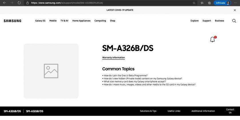 91mobiles ने कुछ समय पहले ही सैमसंग गैलेक्सी ए32 के रियर पैनल की एक्सक्लूसिव लाइव इमेज साझा की थीं। हलांकि, Samsung Galaxy A32 5G को लेकर काफी समय से जानकारियां सामने आ रही हैं। अब तक फोन को कई सर्टिफिकेशन साइट पर स्पॉट किया जा चुका है। वहीं, अब सैमसंग गैलेक्सी ए32 5जी का सपोर्ट पेज सैमसंग यूके और आईरलैंड की ऑफिशियल वेबसाइट पर मॉडल नंबर M-A326B/DS के साथ लाइव हो गया है। इस लिस्टिंग को सबसे पहले टेक वेबसाइट MySmartPrice ने स्पॉट किया है। लेकिन, इसमें भी फोन के बारे में सिर्फ डुअल सिम सपोर्ट के अलावा कोई और जानकारी सामने नहीं आई है।