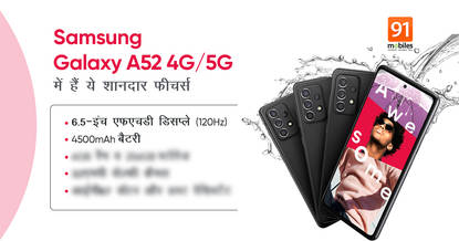 Samsung ने अपनी गैलेक्सी ‘ए’ सीरीज़ के पोर्टफोलियो को आगे बढ़ाते हुए दो नए फोन Samsung Galaxy A52 और Samsung Galaxy A72 स्मार्टफोन को पेश कर दिया है। यह दोनों ही फोन पिछले साल से लगातार टेक जगत की खबरों में छाए हुए थे, जिनपर आज पूरी तरह से विराम लग गया है। इन दोनों ही फोन को इंडियन टेक मंच के साथ ग्लोबल मार्केट में लाए गए हैं। इसके अलावा अगर बात करें गैलेक्सी ए52 की तो कंपनी ने इस फोन को 4G और 5G वेरियंट्स में लॉन्च किया है। वहीं, गैलेक्सी ए72 को सिर्फ 4G वेरिएंट में लाया गया है। इस आर्टिकल में आपको Samsung Galaxy A52 के बारे में पूरी जानकारी देते हैं। Samsung Galaxy A72 की जानकारी के लिए यहां क्लिक करें।
