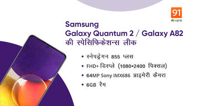 Samsung Galaxy Quantum2 स्मार्टफोन जल्द ही चीन में लॉन्च हो सकता है। चीन से बाहर सैमसंग का यह स्मार्टफोन Samsung Galaxy A82 के नाम से पेश किया जा सकता है। सैमसंग के इस अपकमिंग स्मार्टफोन की लॉन्चिंग से पहले इसकी कुछ डिटेल्स Google Play Console की लिस्टिंग से रिवील हो चुकी थे। अब सैमसंग के अपकमिंग Samsung Galaxy Quantum2 (Galaxy A82) स्मार्टफोन की फोटो माइक्रोब्लॉलिंग प्लेटफॉर्म Weibo पर पोस्क की गई हैं। टिपस्टर मुकुल शर्मा ने ट्विटर पर इस स्मार्टफोन से जुड़ी लेटेस्ट जानकारी शेयर की हैं।