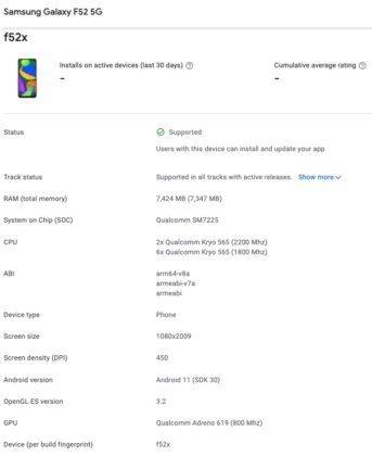 Samsung Galaxy F52 5G स्पेसिफिकेशन Google Play Console