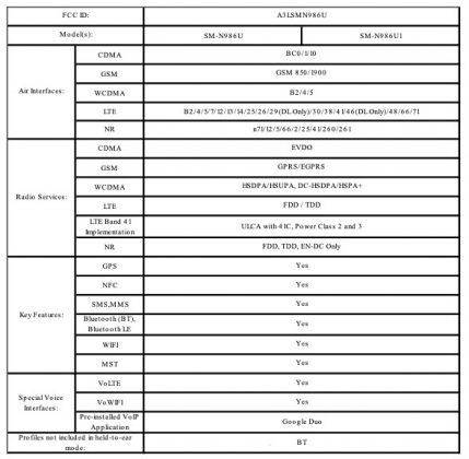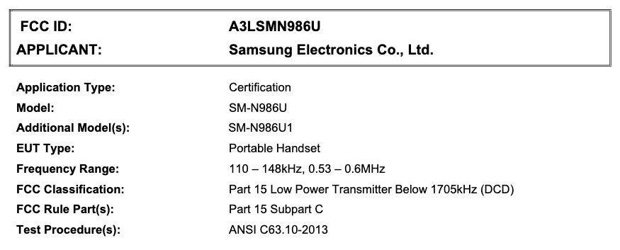 FCC सर्टिफिकेशन्स इमेज के अनुसार Samsung Galaxy Note 20 Plus (मॉडल नंबर SM-N986U) क्वालकॉम स्नैपड्रैगन 865 प्रोसेसर पर काम करेगा जो कि क्वालकॉम X55M मॉडम और 5G क्षमता के साथ आएगा। इसके अलावा FCC सर्टिफिकेशन पर कन्फर्म हुआ है कि Galaxy Note 20 Plus में वायरलैस चार्जिंग होगी। दूसरी ओर पता लगा है कि फोन S-Pen और एलईडी व्यू कवर के साथ आएगा जो कि FCC पर देखा गया है।