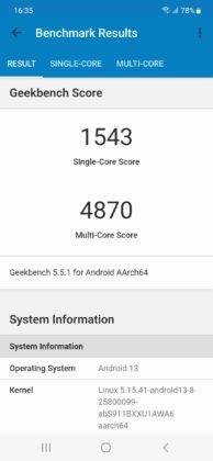 हमने इस फोन पर गीकबेंच बेंचमार्क टेस्ट भी किया। गीकबेंच पर यह फोन सिंगल कोर पर 1,543 और मल्टीकोर पर 4,870 तक गया। वहीं, एनटूटू पर इस फोन को 1,20,7652 तक नंबर मिले। वहीं जीएफएक्स में मैनहटन स्कोर 7,412 और टीरेक्स पर 6,706 तक गया जहां मैक्सिमम फ्रेम सपोर्ट 120 का था। यह स्कोर किसी भी हाई एंड फोन के टक्कर देने के लिए काफी कहा जा सकता है।