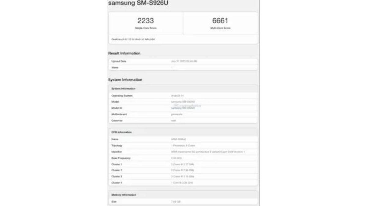 - सैमसंग का नया डिवाइस गीकबेंच लिस्टिंग में SM-S926U मॉडल नंबर के साथ देखा गया है।