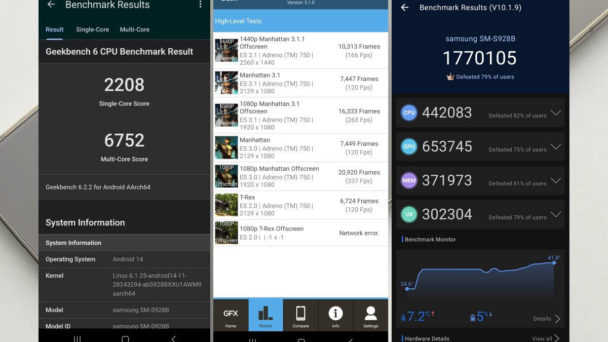 अपनी टेस्टिंग के दौरान हमने इसमें 15 से ज्यादा टेस्ट किए, जिनमें कई टेस्ट परफॉर्मेंस और हीटिंग के लिए थे और सभी में ठीक-ठाक स्कोर कर रहा था। जहां एनटूटू बेंचमार्क पर यह 17,70,105 तक का स्कोर कर पाया। हालांकि यह सबसे बेस्ट स्कोर नहीं है, लेकिन टॉप 3 स्कोर जरूर कहा जा सकता है। वहीं गीकबेंच पर यह डिवाइस सिंगल कोर में 2,208 और मल्टी कोर पर 6,752 तक का स्कोर कर पाया। इसी तरह ग्राफिक्स स्कोर देखें, तो जीएफएक्स बेंच पर यह डिवाइस मैनहटन में 7,449 तक का स्कोर पर पाया, जबकि टीरेक्स पर यह डिवाइस 6,742 तक का स्कोर कर पाया।