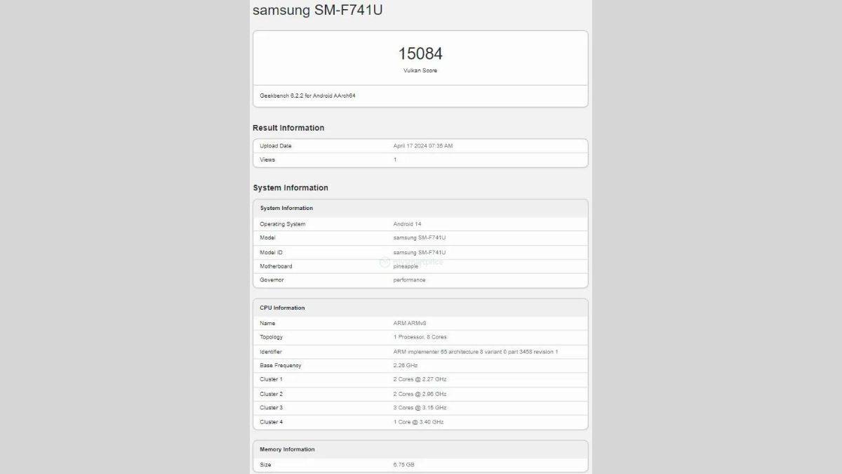 Samsung Galaxy Z Flip 6 गीकबेंच लिस्टिंग
