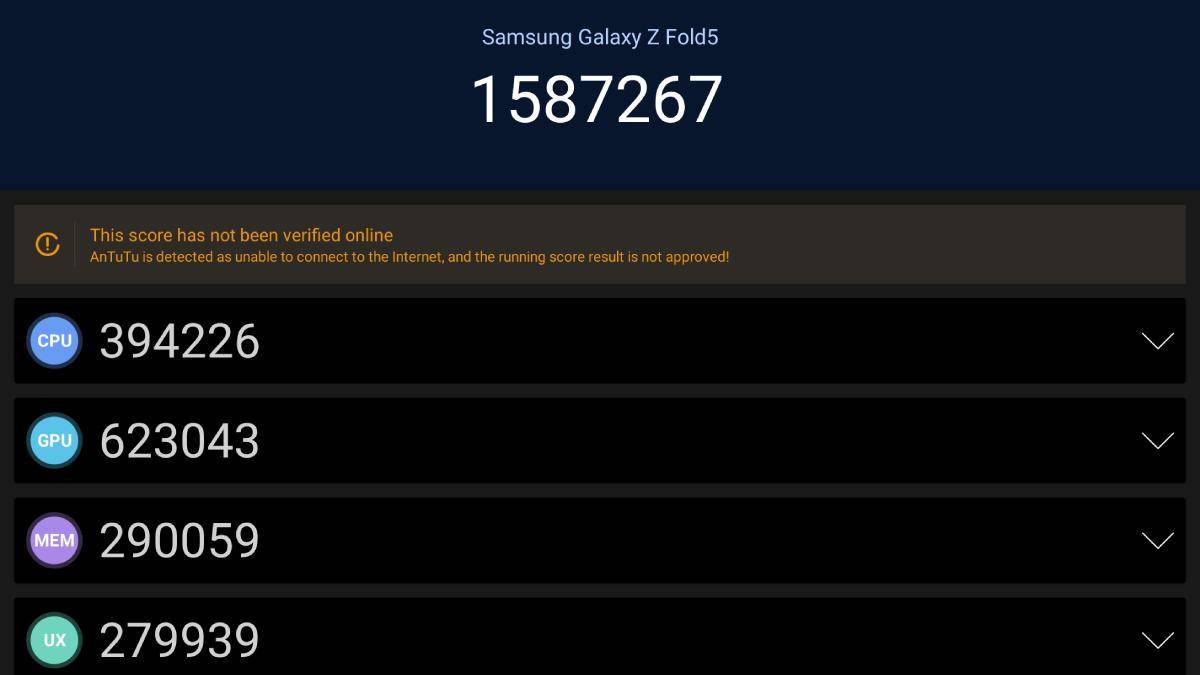 एनटूटू बेंचमार्क पर यह फोन बहुत ही शानदार स्कोर कर गया। यह फोन एनटूटू बेंचमार्क पर 15,87,267 तक का स्कोर कर पाया। इस टेस्ट में ग्राफिक्स और मैमोरी स्कोर भी आप देखेंगे तो काफी शानदार था। यहां GPU स्कोर 6,23,043 तक गया, जबकि मैमोरी के लिए 2,90,059 रहा। आप कह सकते हैं कि यूएफएस 4.0 का फायदा मिला है।