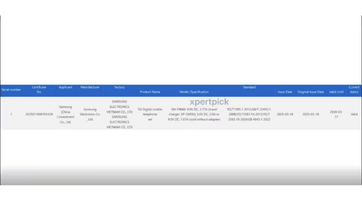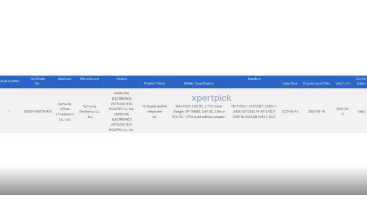- 3C सर्टिफिकेशन प्लेटफार्म पर Samsung Galaxy Z Fold 7 और Z Flip 7 को SM-F9660 और SM-F7660 मॉडल नंबर के साथ देखा गया है।