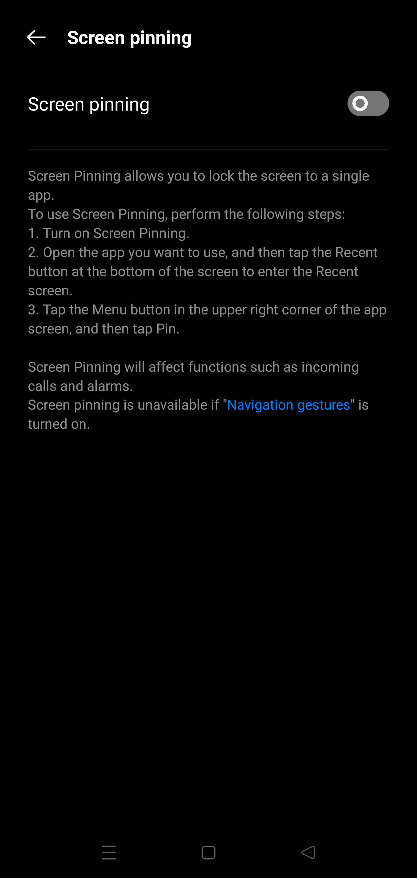 2. सिक्योरिटी में ‘Screen Pinning’ का ऑप्शन दिखाई देगा, इस पर क्लिक करें।