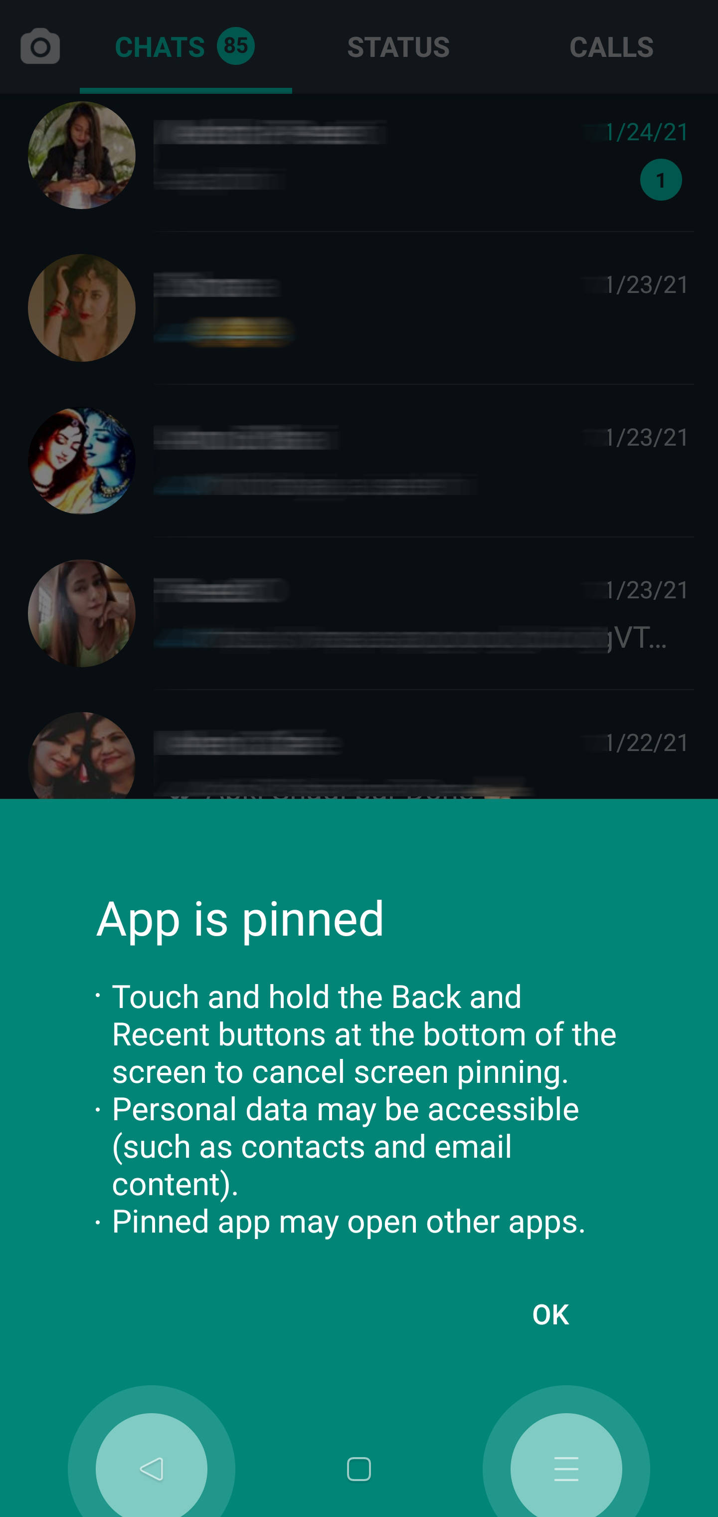4. यहां पर पिनिंग ऑन करने के बाद अब उस ऐप को खोलिए जिसका यूज़ करने के लिए आपके दोस्त, परिवार वाले या बच्चे ने फोन मांगा है।