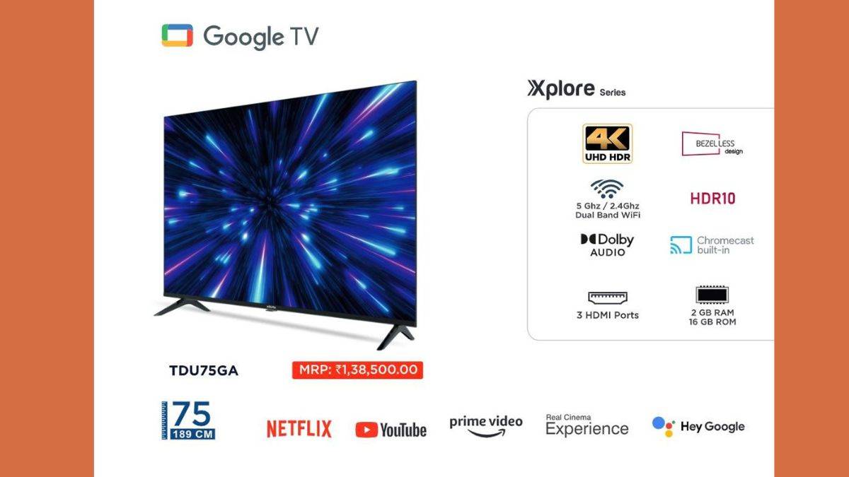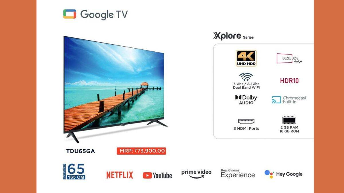 सीरीज का तीसरा मॉडल TDU65GA है, जिसमें 165cm यानी 65 इंच का 4K UHD डिस्प्ले दिया गया है। यह भी HDR10 सपोर्ट, Dolby Audio, Chromecast, Dual-Band Wi-Fi और 2GB RAM + 16GB स्टोरेज जैसे फीचर्स के साथ आता है। मिड-साइज लिविंग रूम के लिए यह टीवी एक अच्छा विकल्प बन सकता है। कंपनी ने इसका प्राइस 73,990 रुपये रखा है।