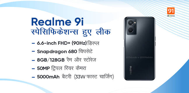 Realme 9i स्मार्टफोन Snapdragon 680 चिपसेट और 50MP कैमरा के साथ होगा लॉन्च, लीक हुए सभी स्पेसिफिकेशन्स