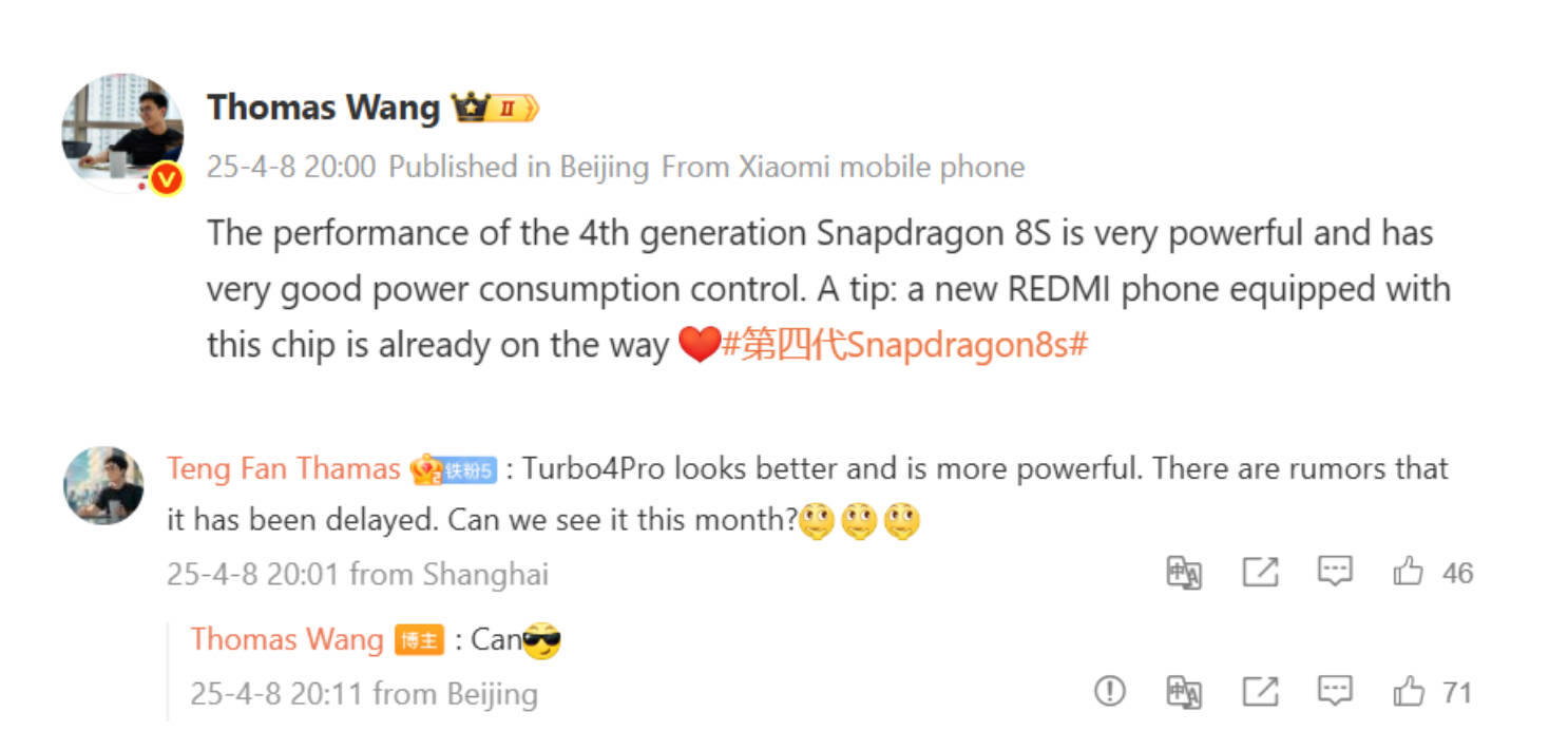 ]]>Redmi Turbo 4 को इस महीने की शुरुआत में लॉन्च किया गया था और ऐसा लगता है कि कंपनी जल्द ही Redmi Turbo 4 Pro लॉन्च करने की तैयारी कर रही है। अगर पहले वाले मॉडल में MediaTek चिप है, तो एक विश्वसनीय स्रोत के अनुसार, Pro मॉडल Snapdragon 8s Elite के साथ आ सकता […]