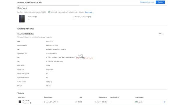 Samsung अपने दो नए स्मार्टफोन Galaxy F36 और Galaxy M36 को जल्द ही मार्केट में पेश कर सकता है। इनमें से Galaxy F36 को Google Play Console साइट पर स्पॉट किया गया है, जिसमें इसके कुछ प्रमुख स्पेसिफिकेशंस और रेंडर इमेज लॉन्च से पहले ही सामने आई है। वहीं, Galaxy M36 और Galaxy Jump 4 को भी Google Play Console की Supported Devices लिस्ट में जगह मिली है। आइए, आगे इन मोबाइल्स से जुड़ी जानकारी विस्तार से जानते हैं।