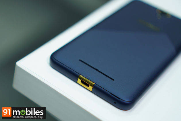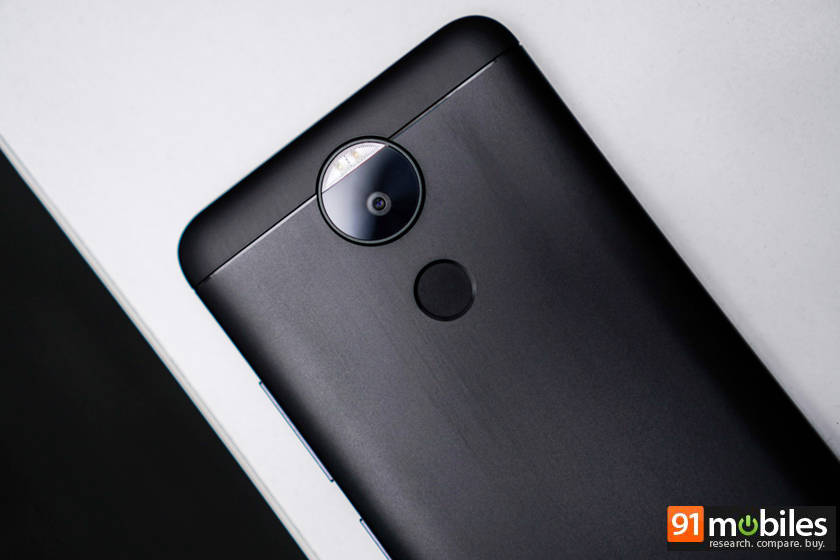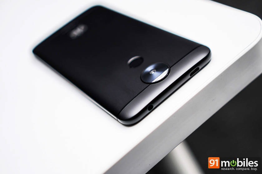 फोन के बैक पैनल पर कैमरा और फिंगरप्रिंट सेंसर एक ही सेटअप में मौजूद हैं। फिंगरप्रिंट सेंसर की प्लेसमेंट अच्छी की गई है, फोन पकड़ने उंगली आसानी से सेंसर तक पहुंच जाती है। फोन के दाएं पैनल पर पावर की और वाल्यूम रॉकर दिया गया है। इन बटंस का यूज़ भी आसानी से किया जा सकता है। कुल मिलाकर डिजाइन ठीक है लेकिन कमी सिर्फ यह कह सकते हैं कि उपयोग के दौरान बैक पैनल पर स्क्रैच पड़ गए थे और पेंट लिकल रहा था।