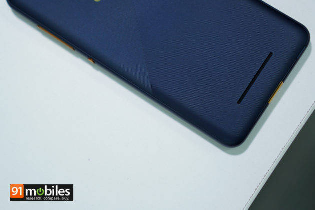 फोन के बैक पैनल पर फिंगरप्रिंट सेंसर मौजूद है। फिंगरप्रिंट सेंसर की प्लेसमेंट अच्छी की गई है। जब आप इसका उपयोग करेंगे तो आसान से उंगली वहां तक पहुंच जाती है। फोन के दाएं पैनल पर बनी फिजिकल ‘की’ वाल्यूम रॉकर के एक्सेस और ​अनलॉक सेंसर के यूज़ को आसान बनाती है। रियर पैनल पर ही नीचे की ओर स्पीकर दिया गया है। फ्रंट पैनल पर सेल्फी कैमरा फोन के सेंटर में दिया गया है जो बेहतरीन फोटो फ्रेम बनाने का सहायक साबित हुआ है। हमारे पास काले रंग वाला मॉडल आया था जो काफी आर्कषक लग रहा था।
