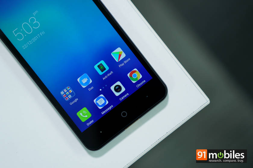 फोन में 1280×720 पिक्सल रेज्ल्यूशन वाली 5-इंच की एचडी आईपीएस डिसप्ले दी गई है जो 2.5डी कर्व्ड ग्लास से प्रोटेक्टेड है। इस रेंज में देखें तो इसी डिसप्ले के साथ फोन उपलब्ध हैं। हालांकि फोन का कलर प्रोडक्शन अच्छा है और टच रिस्पॉन्स भी बेहतर मिला। परंतु स्क्रीन पर ​उंगलियों के निशान पड़ते हैं और कड़ी धूप में आपको डिसप्ले में थोड़ी परेशानी भी होती है।