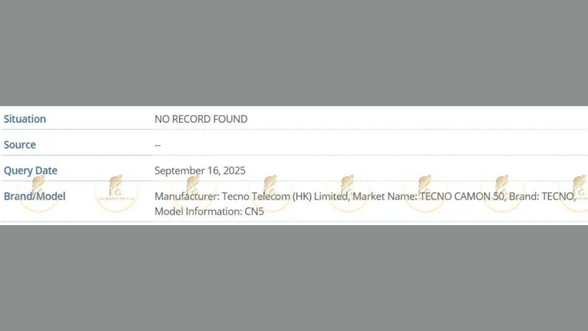 IMEI डेटाबेस में Tecno Camon 50 को मॉडल नंबर “CN5” के साथ स्पॉट किया गया है। यह जानकारी पैशनेटगीकज साइट पर शेयर की गई है। हालांकि इस लिस्टिंग से इसके हार्डवेयर या डिजाइन को लेकर कोई खास डिटेल्स नहीं मिली हैं। अभी यह भी साफ नहीं है कि कंपनी स्टैंडर्ड वैरियंट को 4G या 5G कनेक्टिविटी के साथ पेश करेगी या फिर अलग-अलग मार्केट्स के लिए दोनों वर्जन आ सकते हैं।