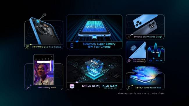 - इसके अलावा फोन्स के प्रोसेसर के बारे में अभी कंपनी की वेबसाइट पर कोई जानकारी सामने नहीं आई है। लेकिन, यह बताया गया है कि डिवाइस में 8 जीबी रैम और 128 जीबी रैम का सपोर्ट होगा। इसके साथ ही फोन में 8 जीबी वर्चुअल रैम फीचर दिया गया है।
