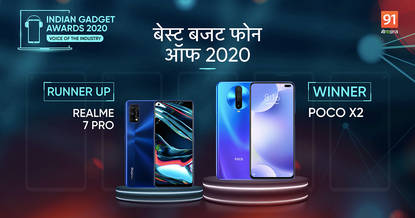 The Indian Gadget Awards 2020 यानि इंडिया का सबसे बड़ा टेक अवाॅर्ड शो। इस अवाॅर्ड शो में सबसे पहली कैटेगरी थी Best Budget Phone of 2020 की जिसमें पिछले साल लॉन्च हुए उन स्मार्टफोंस को शामिल किया गया था जिनकी कीमत 20,000 रुपये से कम थी। इस कैटेगरी में पोको एक्स2, रियलमी 7 प्रो, रेडमी नोट 9 प्रो, सैमसंग गैलेक्सी एम31एस, रियलमी नारज़ो 20 प्रो और मोटो जी 5जी स्मार्टफोन नॉमिनेट हुए थे जिनमें बाजी मारी है Poco X2 ने, तो वहीं रनर-अप रहा है Realme 7 Pro स्मार्टफोन