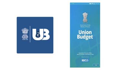 ऑफिशियल ऐप में नीले रंग का लोगो बना हुआ है और Union Budget लिखा हुआ है।