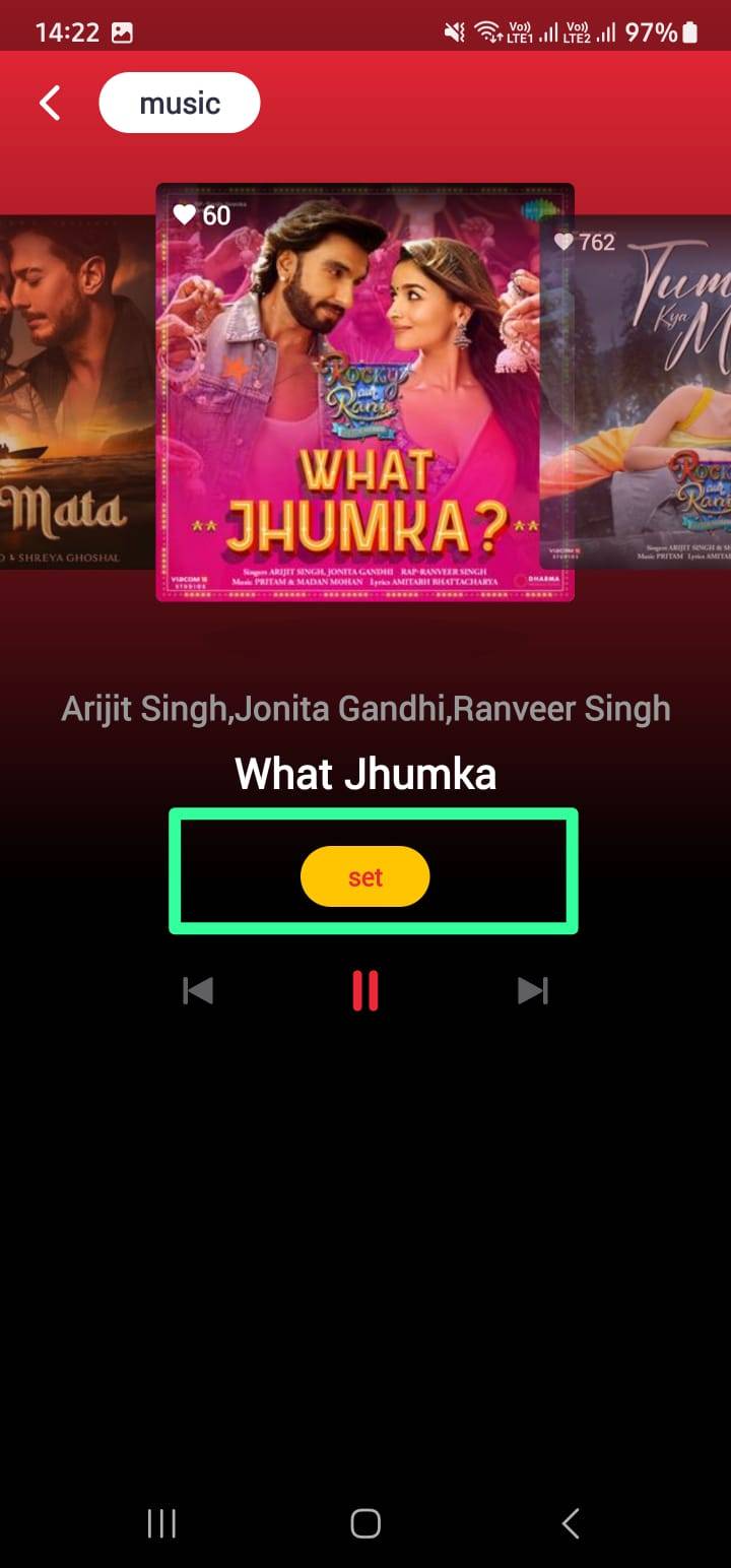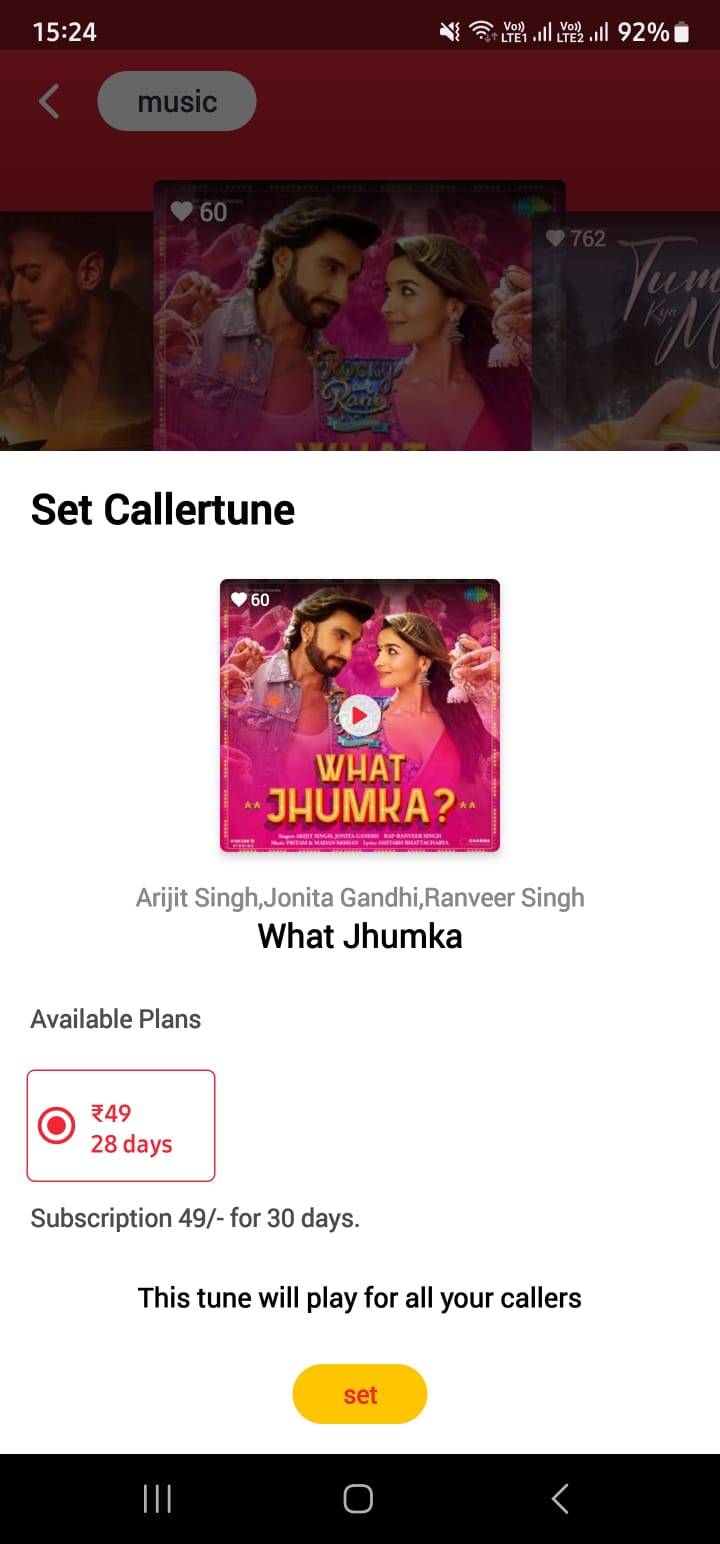 स्टेप #4: जो कॉलर ट्यून आपको पसंद है, उस पर टैप करें। फिर नीचे ‘सेट’ पर टैप करें।