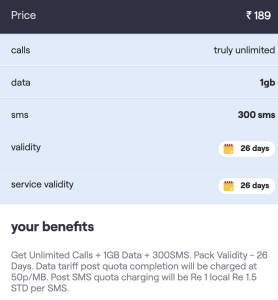 कंपनी ने प्लान की कीमत में तो कोई बदलाव नहीं किया है लेकिन इसकी वैधता को कम कर दिया गया है। पहले यह प्लान 28 दिनों की वैलिडिटी के साथ आता था लेकिन अब वीआई 189 रुपये के प्लान में 26 दिनों की वैलिडिटी दे रही है। प्लान की वैधता 2 दिन कम कर दी गई है।