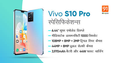 TENAA की लिस्टिंग में Vivo S10 Pro स्मार्टफोन को मॉडल नंबर V2121A के साथ लिस्ट किया गया है। वीवो के इस स्मार्टफोन की मोटाई महज 7.29mm है। Vivo S10 Pro स्मार्टफोन में 3,970mAh की बैटरी दी गई है, जो 44W फास्ट चार्जिंग सपोर्ट के साथ आएगा। Vivo S10 Pro स्मार्टफोन में 6.44-इंच का Super AMOLED डिस्प्ले दिया गया है, जिसका रेजलूशन FHD+ है। वीवो के इस फोन में वाइड नॉच और इन-डिस्प्ले फिंगरप्रिंट सेंसर दिया गया है। Vivo S10 Pro स्मार्टफोन को मीडियाटेक के MediaTek Dimensity 1100 चिपसेट के साथ पेश किया जाएगा। यह भी पढ़ें : Xiaomi की सस्ती और दमदार Redmi 10 सीरीज के स्पेसिफिकेशन्स हुए लीक, जानें होंगी खूबियां