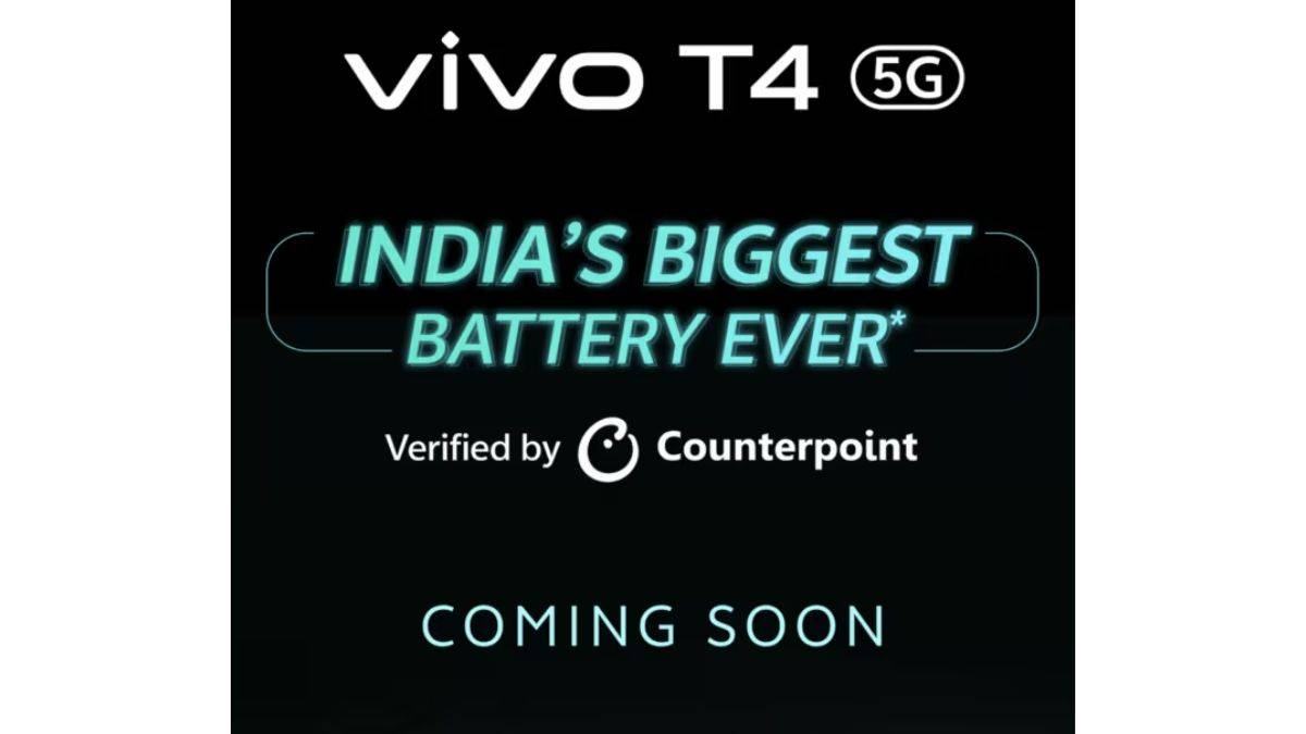 - अपने टीजर पोस्ट में, Vivo ने दावा किया है कि T4 5G में भारत के किसी भी स्मार्टफोन में अब तक की सबसे बड़ी बैटरी होगी। कहा जा रहा है कि इस दावे को रिसर्च फर्म Counterpoint ने सत्यापित किया है।