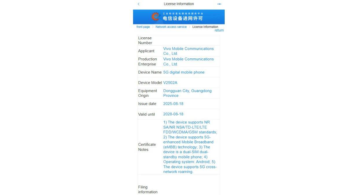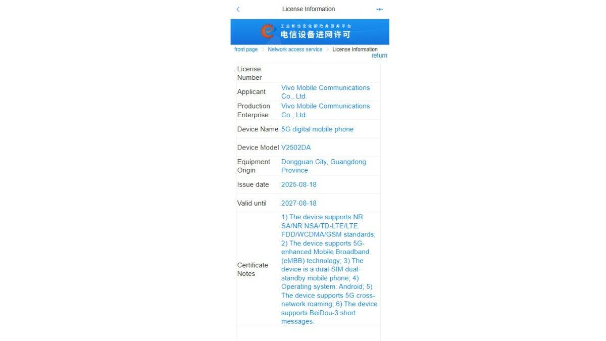 CMIIT लिस्टिंग में Vivo V2502DA मॉडल को लेकर सामने आया है कि यह Beidou-3 सैटेलाइट सिस्टम के जरिए शॉर्ट मैसेजिंग सपोर्ट कर सकता है। इसका मतलब है कि फोन में बेसिक सैटेलाइट कम्युनिकेशन फीचर मिल सकता है। जिससे यूजर्स बिना नेटवर्क कवरेज के भी इमरजेंसी मैसेज कर सकते हैं। बता दें कि इस तरह का फीचर अब तक कुछ ही फ्लैगशिप स्मार्टफोंस में ही देखने को मिला है।