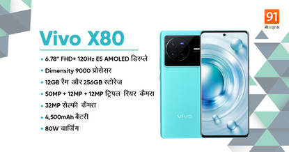 Vivo ने ग्लोबल मार्केट में अपने फ्लैगशिप Vivo X80 और Vivo X80 Pro स्मार्टफोन को ग्लोबल मार्केट में लॉन्च कर दिया है। Vivo ने इन दोनों स्मार्टफोन को पिछले महीने चीन में लॉन्च किया था। Vivo X80 और Vivo X80 Pro स्मार्टफोन को भारत में 18 मई को लॉन्च किया जाना है। Vivo X80 Pro स्मार्टफोन को Qualcomm Snapdragon 8 Gen 1 प्रोसेसर के साथ पेश किया गया है। वहीं स्टेंडर्ड Vivo X80 स्मार्टफोन को MediaTek Dimensity 900 चिपसेट के साथ लॉन्च किया है। यहां हम आपको Vivo X80 स्मार्टफोन के स्पेसिफिकेशन्स और क़ीमत के बारे में बता रहे हैं।