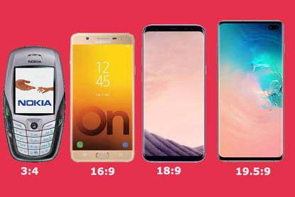 2016 तक 16:9 आसपेक्ट वाले स्क्रीन रेशियो वाले स्मार्टफोन ही बाते थे। पंरतु 2017 में सैमसंग ने 18:9 आसपेक्ट रेशियो वाले स्क्रीन की शुरुआत कर दी जिसे कंपनी ने इनफिनिटी डिसप्ले का नाम दिया। इस स्क्रीन के साथ फोन में बेज़ल और भी कम हो गए और छोटे से डिवाइस में लोगों को वाइड स्क्रीन मिलने लगा।