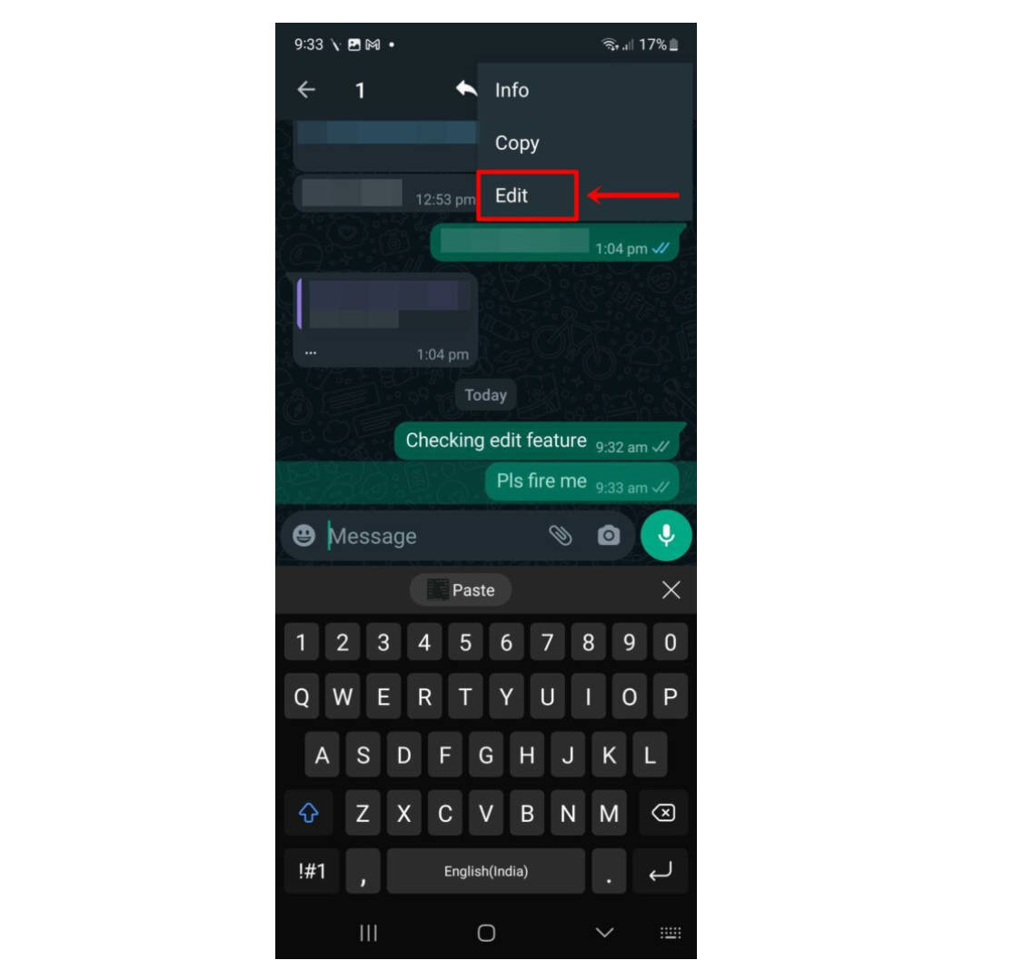 - इस एडिट ऑप्शन पर क्लिक करने आप पहले भेजे गए गलत मैसेज में सुधार कर पाएंगे।