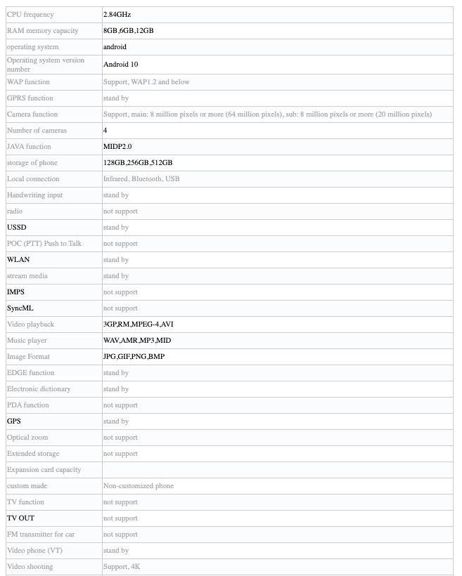 Redmi K30s टेना पर एंडरॉयड 10 ओएस के साथ लिस्ट हुआ है जिसके साथ प्रोसेसिंग के लिए फोन में 2.84गीगाहर्ट्ज़ क्लॉक स्पीड वाले आक्टाकोर प्रोसेसर के साथ क्वॉलकॉम का स्नैपड्रैगन 865 चिपसेट दिए जाने की बात कही गई है। सर्टिफिकेशन्स साइट पर यह फोन तीन वेरिएंट्स में मौजूद है जिनमें 128जीबी स्टोेरेज, 256जीबी स्टोरेज और 512जीबी स्टोरेज शामिल है। हालांकि टेना पर यह नहीं साफ हो पाया है कि शाओमी रेडमी के30एस कितनी जीबी रैम मैमोरी सपोर्ट करेगा।