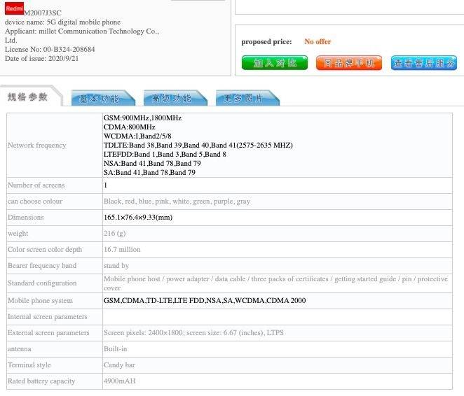 Redmi K30s को चीनी सर्टिफिकेशन्स साइट टेना पर M2007J3SC मॉडल नंबर के साथ लिस्ट किया गया है। इस लिस्टिंग में फोन की लगभग सभी जरूरी स्पेसिफिकेशन्स के साथ ही फोन की फोटो को भी सार्वजनिक कर दिया गया है। टेना पर मौजूद रेडमी के30एस की फोटो में यह फोन कल ही इंडिया में लॉन्च हुए Xiaomi Mi 10T जैसा नज़र आ रहा है। फोन के बैक पैनल पर मौजूद रियर कैमरा सेटअप मी10टी जैसे डिजाईन में दिया गया है।