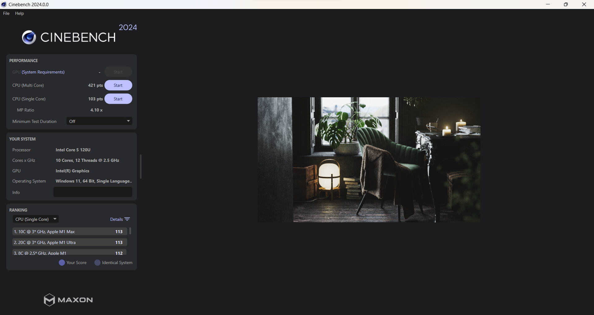 Consequently, the processor’s performance is decidedly better than last year’s U-series processor (1335U), and it is neck-and-neck (if not better) with a comparable 13th Gen H-series chipset (13420H, for instance). However, it is inferior to the current crop of Core Ultra processors, including the Core 5 Ultra 125H and the Core 7 Ultra 155U. I should also add that, unlike Intel’s Core Ultra ‘H’ lineup, the Core 5 120U doesn’t ship with Intel’s powerful Arc-integrated graphics.