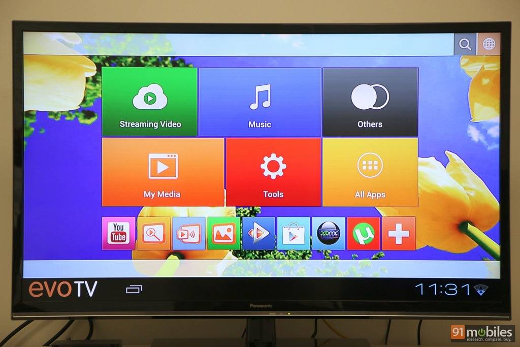Complementing the capable hardware is Android, which jumps into action as soon as the device starts. The start screen features a tile-based UI, called EvoView, making full use of the large TV screen at its disposal and also easier to access by the user. The interface is neatly stacked into various categories such as Video, Music, My Media, Tools, Others and All apps. These are essentially folders with all the related apps available together. A row at the bottom also has some useful media-related apps. You’ll also find the Android notification panel towards the bottom, along with Wi-Fi / Ethernet status and time. Just above the notification bar is a panel that shows new headlines as a ticker, aggregating them from various news sources such as NDTV and Cricinfo. It’s really a thoughtful addition, as users don’t need to go anywhere just to check out the day’s important news.