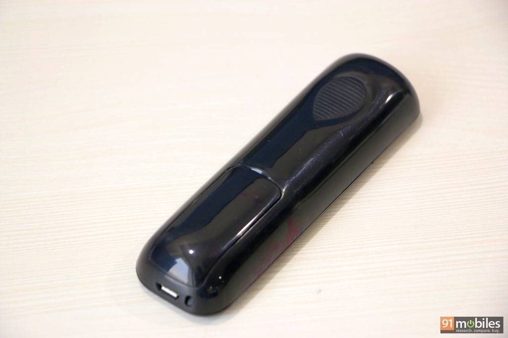Coming to the sides of the remote, the bottom part is home to a micro-USB port for charging its internal battery. We really appreciate this, since you can charge the EvoTV remote with your regular mobile charger and it does away with the AA or AAA batteries you usually need to keep in stock, so as to replace TV remote’s battery when required. At the top, there’s an IR sensor. The rear of the remote comes with a touch sensor which needs your finger touching it when you want the remote to act as a wireless pointer for navigating the interface. Placing your finger on this sensor and and moving the remote in the air basically controls an onscreen pointer, and you can then use the other available keys to interact with the EvoTV’s interface. Otherwise, you can make use of the arrow keys to navigate to a certain menu too.