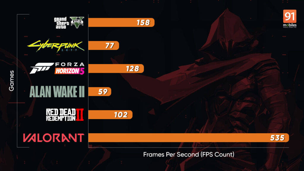 - Alan Wake 2 played at an average of 59FPS with a high graphical preset and high ray-tracing mode.