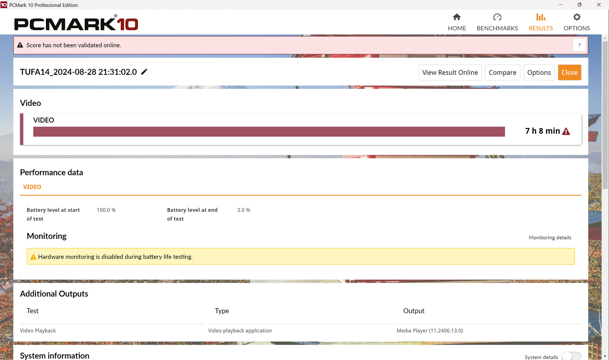 AMD’s latest Ryzen AI 300 series mobile CPUs not only bring better performance, but they are also quite power efficient. The 73 Whr battery on this laptop managed to deliver close to 8 hours of battery life and you could push that even further by reducing the brightness, resolution and refresh rate. In PCMark 10’s video battery life benchmark, the laptop scored 7 hours and 8 minutes, which seems a bit less than what I was expecting. But I assume this will get better with future firmware updates since the Ryzen AI 9 HX 370 is still new to the market.