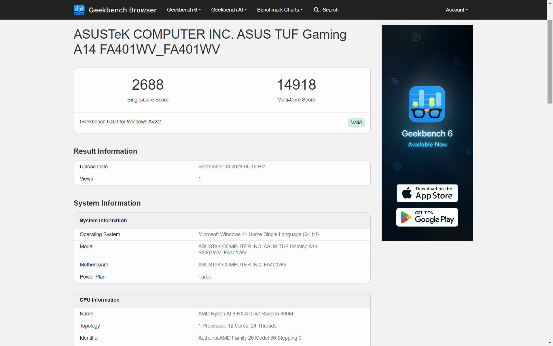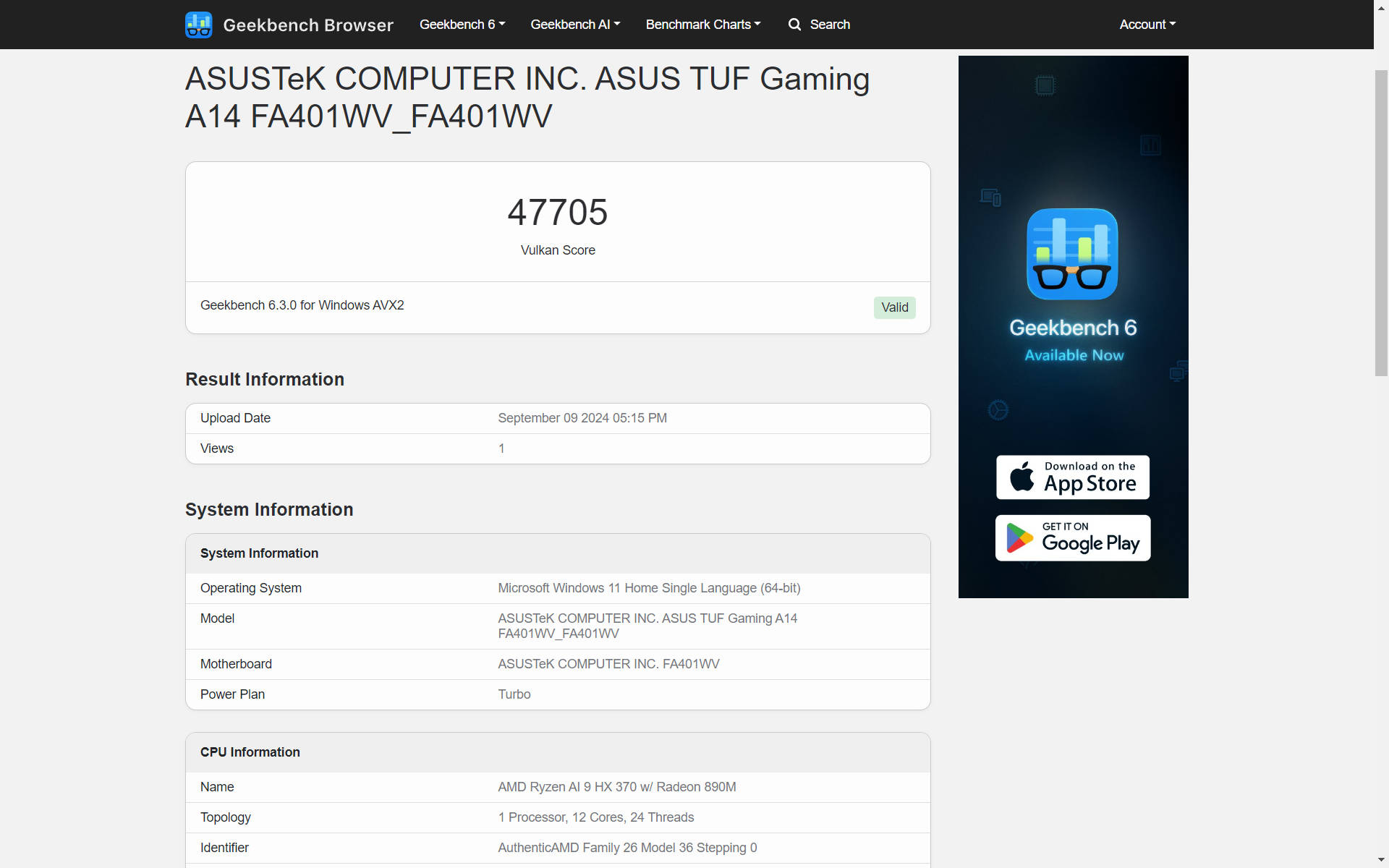 The one I am reviewing here is the higher tier model that features the latest AMD Ryzen AI 300, specifically the Ryzen AI 9 HX 370 processor. It features a similar boost clock speed as the 8845HS, but comes with 12 cores, 24 threads, more cache and a faster NPU capable of 50 TOPS. It is built on AMD’s Zen 5 architecture that uses TSMC’s N4P (4nm) node. Although the chip has a variable TDP of between 15W and 54W, ASUS has configured it for the TUF Gaming A14 to go as much as 70W.